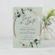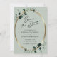 Eucalyptus Guld Modern calligraphy QR Code Sage Bröllop spara datum ... Vår sage botanical Save the Date card har en faux guld metallisk oval ram som är märkt med emerald-hued eucalyptus löv skapar ett naturligt tittar gräns för texten i meddelandet. Kortets baksida innehåller webbplatsinformation för bröllop och ett exempel på QR-kodgrafik som du kan ersätta genom att helt enkelt ange din egen webbadress för bröllop på mallen. All exempeltext på båda sidor av kortet (bortsett från calligraphy inslag) kan enkelt revideras med egna uppgifter på samma anpassningsmall.