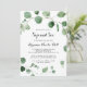 Denna eukalyptus moderna kalligrafi-sipp och se inbjudan är perfekt för ett enkelt möte med baby party. Konstruktionen har vattenfärgad handdragen elegant botaniskt eukalyptus grenar och löv.