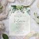 Den här eleganten och det moderna inbjudningskort för möhippan har en vacker eucalyptus med vattenfärg i skuggor av grönt, grått och vitt som perfekt fångar naturens skönhet. Oavsett om du är värd för ett intimt möte med familj och vänner eller ett större firande med alla dina kära, så är den här utformningen perfekt för vilken brid som helst att tittar att tillföra hennes möhippa en aning sofistikering och elegans.