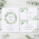 Designat för att samordna med vår insamling av bröllop-andedräkt av eucalyptus, har denna botaniska grönt sprejer av vattenfärgade eucalyptus löv som omger önskat svarsdatum och anpassningsbarna accepterar och avböjer formuleringen.