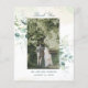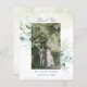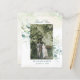 Elegantens botaniska tema bröllop tack vare ditt favoritfoto med eukalyptus löv och grönt med ett blått och blått spektrum av faux guld glitter över en pastellfärgad tvätta. Ovanför är "Tack" i skript och nedan är ditt efternamn och datum. Baksidan har ditt personliga meddelande. En enkel, rustik design som är underbar för sommaren bröllop.