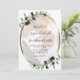 Inbjudan till Eucalyptus Photo Guld Metallic Oval Wedding... Vår inbjudan till fotobröllop med eukalyptus innehåller en guld metallisk oval ram som är förskönad med sage och emerald grönt eucalyptus löv som gränsar till ett foto av bruden och brudgummen mot en skarp vit bakgrund. Bilden placeras på ett lagrar under en vit genomskinlighet för att "tona" färg något så att texten överst är läsbar. All exempeltext kan enkelt revideras med egen information om anpassningsmallen.