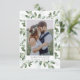 Det vackra tackkortet i bröllop har ett lodrät mot ram i vattenfärgen eukalyptus löv. Ord under fotot säger Forever love med plats för ditt namn och bröllop-datum. På baksidan kan du ladda upp ytterligare ett foto (som beskärs till en kvadrat) och lägga till ett eget tackmeddelande