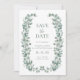 Detta Eucalyptus Photo Save Date är en vacker blandning av sage grönt hues och enkelt botaniskt inslag, som erbjuder en enkel fusion av rustik boho chic och elegant modern estetik som visar unika, handmålade botaniska ämnen som fångar eukalyptus skönhet. Den underskattade paletten och de känsliga detaljerna i färg utgör en harmonisk utformning som naturligt anger tonen för en oförglömlig dag. Det är perfekt för den contemporary brud som uppskattar blandningen av enkelhet, elegans och en aning natur.