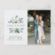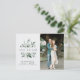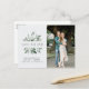 Meddela din bröllopsdatum med denna stilrena design som har skrivstil med eucalyptusblad och ett foto av paret . Texten är redigerbar tillsammans med den vackra bilden.