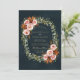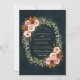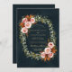 Elegance dominerar i denna moderna formella inbjudan till höstbröllop med en blommigt botaniskt tema. En vattenfärgad illustration av en oval ram som består av eukalyptus och grey, med två blommigtar av persikor och ro med koppar och terracotta-löv och grenery dekorerar denna elegant, enkla och sofistikerade fallbröllopsinbjudan med mörk grönt bakgrund. Ett härligt val för ett fallbröllop under höstmånaderna september, oktober och november. Perfekt för par som har kärlek som vattenfärgskonst, botaniska teman, blommigt och formella, traditionella, moderna klassiska formgivningar.