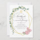 Trendigets geometriska eukalyptus greenery och rosa ros bat mitzvah inbjudan med guld-geometriska ram och myntvattenfärg tvättar omvänd.