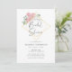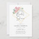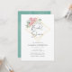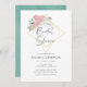 Trendigets geometriska eukalyptus greenery och rosa ros inbjudningskort för möhippa med guld-geometriska ram och myntvattenfärg tvättar omvänd.