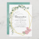 Trendigets geometriska eukalyptus greenery och rosa ros quinceanera-inbjudan med guld-geometrisk ram och myntvattenfärg tvättar omvänd.