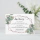 Detta är ett vackert bröllop detajlkort med eucalyptus och rose gold geometrisk ramdesign. En matchande bakgrund med eucalyptus blad mönster ingår.