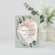 Eucalyptus Sage Guld Metallic Photo Bröllop spara datum Postcard... Med vårt botaniska Spara vykortet Date har vi en metallisk oval ram i guld som är märkt med Eucalyptus-löv med nödhud som skapar ett naturligt tittar gräns för ditt foto och överlagrad meddelandetext. Kortets baksida innehåller din returadress, bröllop webbplatsinformation och en QR-kodgrafiklamall som du kan ersätta med din egen kodgrafik. All exempeltext på båda sidor av kortet kan enkelt revideras med dina egna uppgifter om anpassningsmallen.