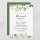 Denna enkla inbjudan till eucalyptus brun blommigt pension är perfekt för ett modernt pension firande. Konstruktionen har en konstnärligt handmålad vacker eukalyptus grönt löv som ordnas i geometriska former och inspirerar naturskönheten.