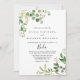 Den här eucalyptus enkla bruna blommigten Spanska bröllopsinbjudan är perfekt för ett rustiskt bröllop. Konstruktionen har en konstnärligt handmålad vacker eukalyptus grönt löv som ordnas i geometriska former och inspirerar naturskönheten.