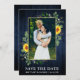 Modern Watercolor Eucalyptus Greenery Sunwers Ram sparar datummeddelande för Förlovning av foto-meddelande - Guld Ram, Rustic Land Blue Wood