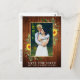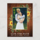 Modern Watercolor Eucalyptus Greenery Sunwers Ram sparar datum för meddelande om Förlovning av foto-meddelande vykort - Guld Ram, Rustic Land Wood