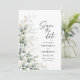 Eucalyptus sparar datumet med ett fotokort. Den här inbjudan från snyggt & elegant bröllop innehåller en fantastisk, handmålad vattenfärg Eucalyptus Löv Greenery. Sök efter matchande objekt i Greenery Collection of Watercolor Eucalyptus Löv.