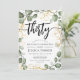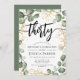 Inbjudan till 30års födelsedag-partiet. Elegantens botaniska blommigt i grönt vit och faux glitter guld. Klassens moderna utformning med handmålat vattenfärgsmörjande eucalyptus-krans och skript-typsnitt. Perfekt för en snyggt 30 dagar firande. Anpassa med dina egna detaljer. Kan anpassas för vilken ålder som helst! Skrivna Zazzle-inbjudningar eller digital utskrivbar mall för omedelbar nedladdning.