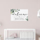 Modern enkel och elegant med kalligrafi "Welcome" och eucalyptus greenery foliage bröllop tecken.