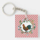 Underbar design för ditt hyttdekortema - har diagonal pikonisk röd bakgrund med vattenfärgad eucalyptus-krans och färgstark illustration av tupp