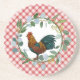 Underbar design för ditt hyttdekortema - har diagonal pikonisk röd bakgrund med vattenfärgad eucalyptus-krans och färgstark illustration av tupp