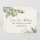 Vackert vykort för flytta av lätt elegant med mjuka vattenfärger i ljust grönt eukalyptus löv med guld-accenter och "Vårt Nya adress" skrivet i ett skript för söt snyggt. Anpassa ditt meddelande om flytta mer detaljerat och inkludera ett telefonnummer och e-post adress om du vill.