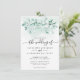 Matchningsuppsättningen finns på www.zazzle.com/littlewhitewedding - Den här vackra inbjudan till botaniska stil bröllopsinbjudningar i eucalyptus innehåller både rustik- och vattenfärgdetaljer om en unik blommigt. De vattendroppiga penselerna är idealiska för en elegant modern men rustik bröllopsinbjudning. Den här vackra designen är perfekt för alla kärleksfulla par som planerar en fantastisk intim bröllop-ceremoni. Det här är inte bara en vacker och unik skapelse, det kan fungera som en vacker konstnär för att illustrera för era gäster att bröllop i hög grad kommer att vara ett romantiskt intimt och milt stil.