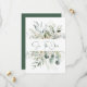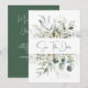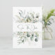 Rustic påstående med eukalyptus och små vita blommor och vita bär. Anpassa med egen information