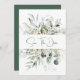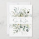 Rustic påstående med eukalyptus och små vita blommor och vita bär. Anpassa med egen information