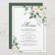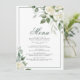Eucalyptus White Flowers Bröllop Menu 5x7 Meny