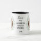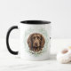 "LOVE MY AMERICAN WATER SPANIEL" declares this mug for the Water Spaniel dog owner. Each side of the mug has a beautiful portrait of a brown Spaniel framed by soft green watercolor eucalyptus leaves. Between the two images is the text, which may be easily customized, or even removed by you, and your monogram or name.