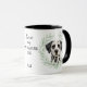 "LOVE MY DALMATIAN DOG" declares this mug for the proud Dal dog owner. Each side of the mug has a beautiful watercolor portrait of a Dalmatian dog framed by soft green watercolor eucalyptus leaves. Between the two images is the text, which may be easily customized, or even removed by you, and your monogram or name.