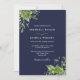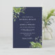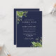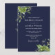 Denna eleganta eucalyptusgrönska botaniska navyblå bröllopsinbjudan kan anpassas med din information i chic typografi med din monogram på baksidan. Designad av Thisisnotme