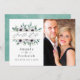 Trendig geometrisk eukalyptusgrönska och vallmoväxter i pastellfärgade bröllop spara datum-kort med guldgeometrisk ram och mint vattenfärg tvätt baksida.