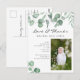 Elegant eukalyptus baby fotoannonseringskort med text, "Kärlek och tack"