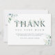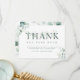 Detta tackkort har målade akvarell botaniska gröna bokstäver, dekorerade med eukalyptus och gröna blad. För mer avancerad anpassning av denna design, klicka på den BLÅA DESIGNVERKTYGSKNAPPEN.