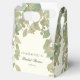 Stilren bröllopsdusch-gåva låda med en mjuk eukalyptus blad design i salvia grön och beige på en ren vit bakgrund. Anpassningsbar med brudens namn och dusch datum, det är idealiskt för eleganta och naturinspirerade firanden. Perfekt för godsaker, små gåvor eller tack-överraskningar för dina gäster.
