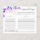 Be gästerna på bröllopsduschen att dela sitt favorit recept med den blivande bruden med detta enkla "Ett Speciellt Recept"-kort. Denna design har akvarell eukalyptus grönska och ett matchande recept förfrågan inkluderingskort finns tillgängligt i vår butik.