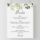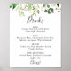 Denna eukalyptus enkla blommiga bröllopsdryck meny skylt är perfekt för ett grönt bröllop. Designen har konstnärligt handmålad vacker eukalyptusgröna blad arrangerade i geometriska former, som inspirerar till naturlig skönhet.