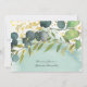 Rustika inbjudan till bröllop med grönska med en urblekt vattenfärg ombre-bakgrund, eleganta gröna botaniska eukalyptusblad, stänk av falskt guldfolie, ett foto av paret och en enkel brölloppsmall som är lätt att anpassa.