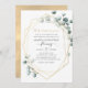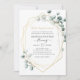 Trendig akvarell eukalyptus silver dollar 50-års bröllopsdag elegant typografi inbjudan med guldgeometrisk ram.