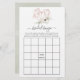 Bröllopsdusch bingospel kort med anemoneblommor och eukalyptusblad i ett roseguld geometriskt hjärta.