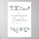 Trendigt vattenfärg eukalyptus silverdollar bröllopsfest välkomstaffisch med guldgeometrisk ram.