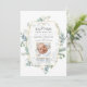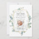 Vild skog vattenfärg skog eukalyptus herbarium dop och första födelsedag fotografi inbjudan med guld geometrisk ram utformad för att snabbt och enkelt anpassas till ditt evenemang. Ett fyrkantigt fotoformat rekommenderas.