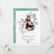 Trendiga vattenfärg eukalyptus silverdollar bröllop spar datum foto kort med guld geometrisk ram.