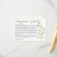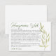 Skicka det lyckliga paret iväg med kärlek och goda önskningar för deras nästa stora äventyr! Detta bröllopskort med önskningar om smekmånad har en modern och minimalistisk design med mjuka eukalyptusgröna blad, perfekt för trädgårds-, rustika eller grönsketemanade bröllop och brudshower. Placera dessa kort vid ert mottagning eller brudshow så att gästerna kan dela vänliga tankar, resetips eller söta råd inför smekmånaden. En vacker souvenir som paret kommer att värna länge efter bröllopsdagen.