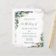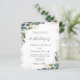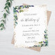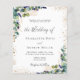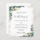En vit bakgrund dekorerad med eukalyptus grönska och gyllene bladverk. Personifiera och lägg till era namn och bröllopsdetaljer.