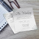 Den chic bröllopsinladningsdesignen har en bukett av akvarell eucalyptusgrönska och en elegant sofistikerad typsnittssats. Se länken till samlingen på denna sida för att se alla matchande föremål i denna vackra design.