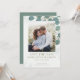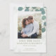 Elegant akvarell eukalyptus grönska bröllop spara datum dubbelsidigt kort. Med akvarell eukalyptusblad. Denna designmall har en en-fotolayout.