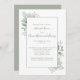 En elegant inbjudan till övningsmiddag med gröna eukalyptusblad. ett elegant sätt att fira kvällen före festligheterna med en rustik modern suckulent, akvarellillustrerad lövdesign. Dina gäster kan äta dricka öva i stil. med grönt och vitt, klassisk fin skript typografi, denna botaniska och moderna design tilltalar många.