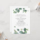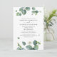Anpassa enkelt denna botaniska bröllopsinbjudan-mall med söt grönska eukalyptusblad och modern typografi på vit bakgrund. Perfekt för att matcha din grönsketema ceremoni.
